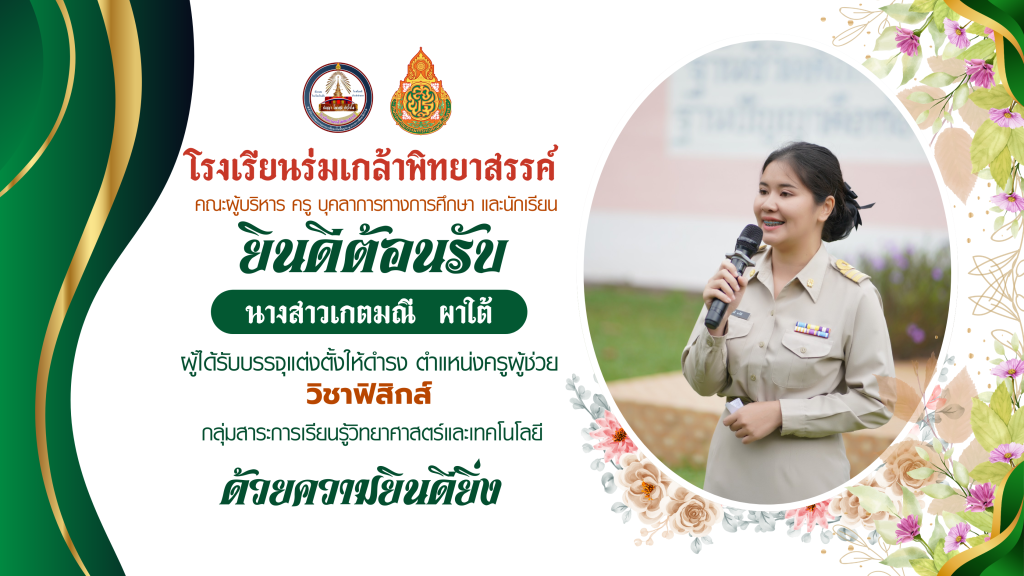 โรงเรียนร่มเกล้าพิทยาสรรค์ ขอแสดงความยินดีและยินดีต้อนรับ คุณครูเกตมณี ผาใต้ และคุณครูกมลชนก ทองสรรค์ เนื่องในโอกาสบรรจุและแต่งตั้งเข้ารับราชการ ตำแหน่งครูผู้ช่วย สาขาวิชาฟิสิกส์และสาขาวิชาภาษาไทย สู่ครอบครัวรั้วม่วง-แสด ด้วยความยินดียิ่ง