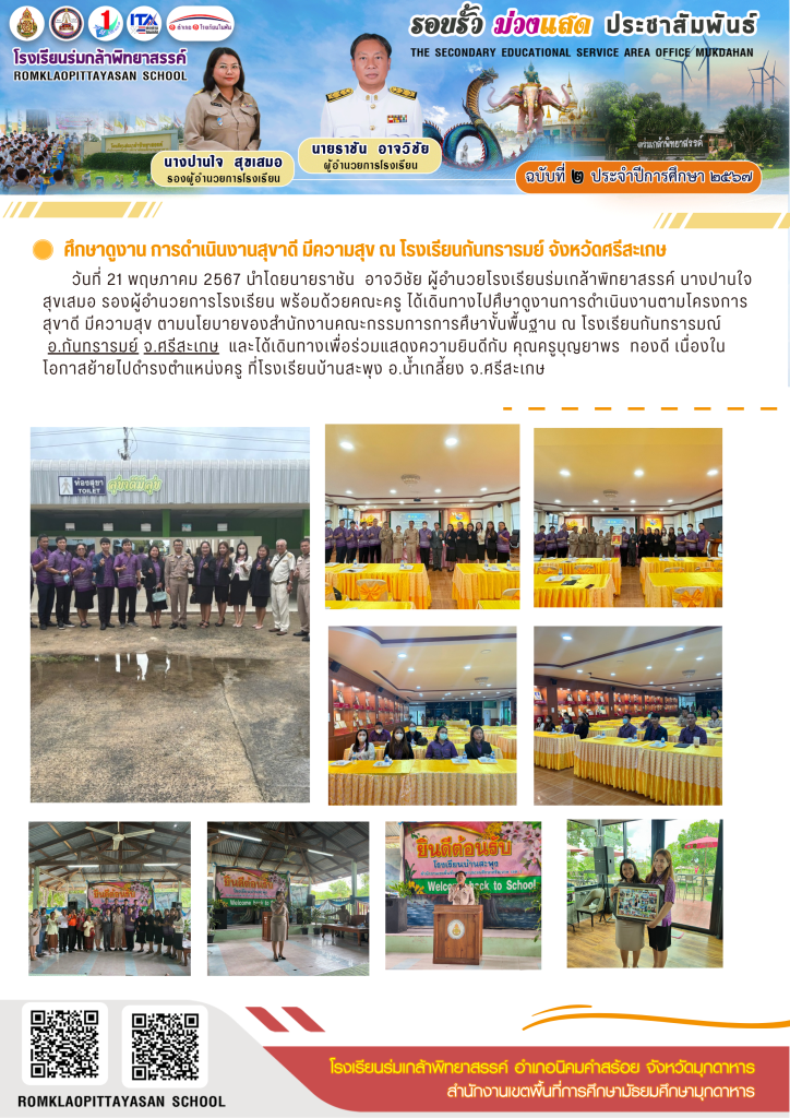 จดหมายข่าว วารสารฉบับที่ 2 ศึกษาดูงาน การดำเนินงานสุขาดี มีความสุข ณ โรงเรียนกันทรารมย์ จังหวัดศรีสะเกษ พฤษภาคม 21, 2024 admin