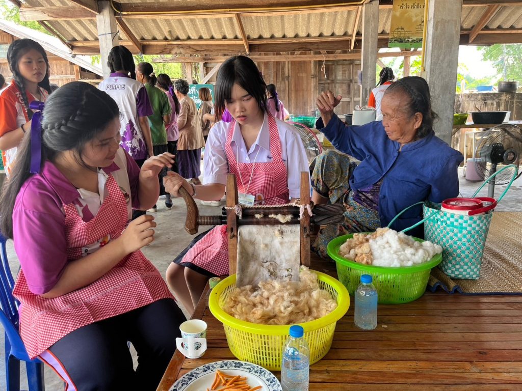 วันพุธ ที่ 5 มิถุนายน พ.ศ. 2567 และวันศุกร์ ที่ 7 มิถุนายน พ.ศ. 2567 นายราชัน อาจวิชัย ผู้อำนวยการโรงเรียน นางปานใจ สุขเสมอ รองผู้อำนวยการโรงเรียน และคุณครูจุฑารัตน์ พละสุ ได้นำตัวแทนนักเรียนชั้นมัธยมศึกษาปีที่ 1 และ 6 เข้าร่วมการทำผ้าย้อมสีจากเปลือกไม้ที่มีอยู่ในชุมชน เพื่อเป็นการสือบสานศิลปวัฒนธรรมในการย้อมผ้าให้คงอยู่ไว้ ซึ่งวิทยาลัยชุมชนมุกดาหารเป็นผู้จัดอบรมในครั้งนี้ ณ บ้านคำนางโอก อำเภอนิคมคำสร้อย จังหวัดมุกดาหาร