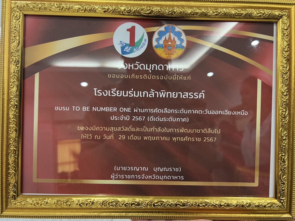 รับมอบเกียรติบัตร TO BE NUMBER ONE ระดับภาคตะวันออกเฉียงเหนือ